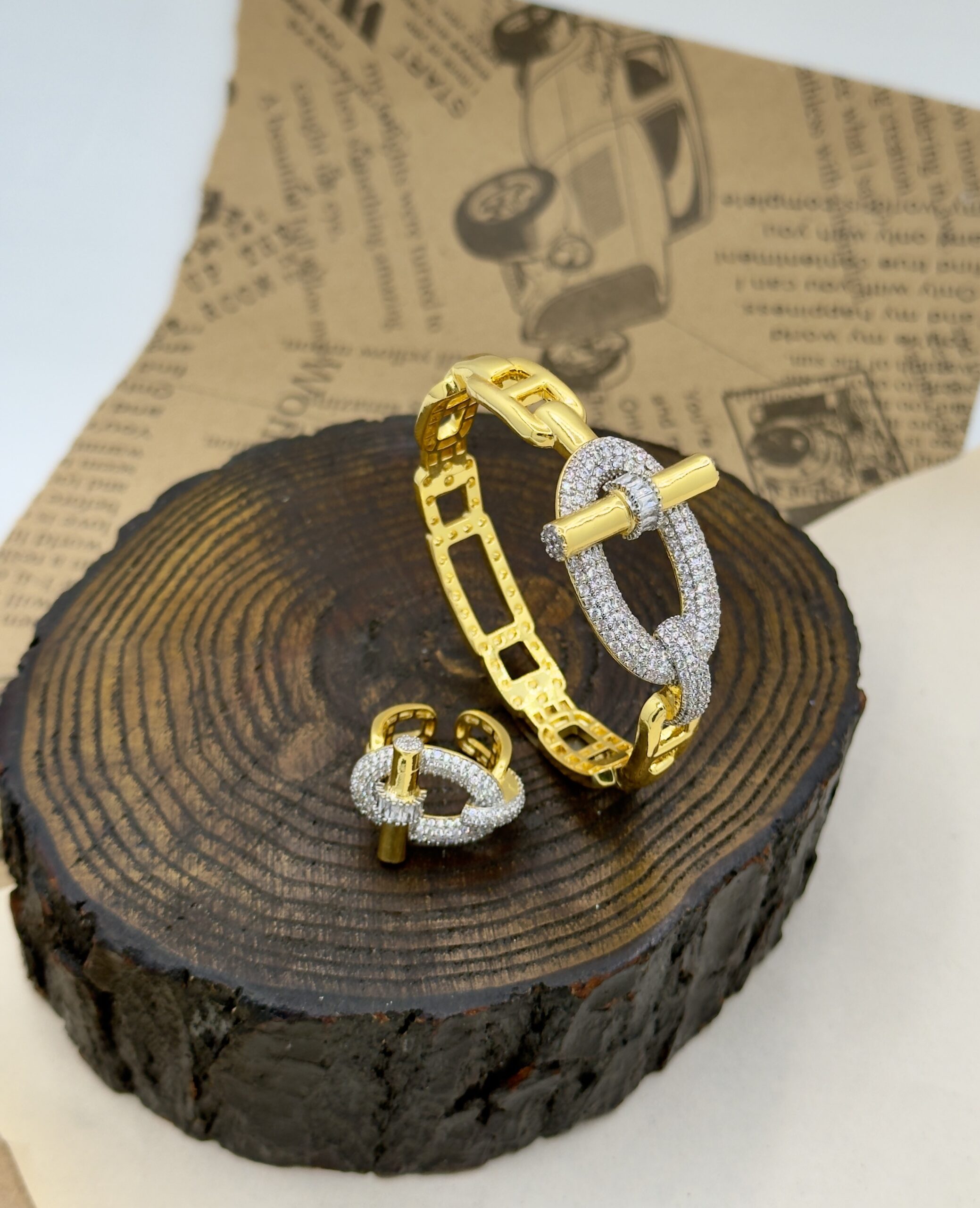 برای داشتن ظاهری خاص و هماهنگ، بنگل انگشتر هرمس کد ۱۴ را با دستبند یا گردنبند هرمس ست کنید. این ترکیب، جلوهای لوکس و هماهنگ به استایل شما میدهد و برای مجالس، دورهمیها و حتی استایل روزمره بسیار مناسب است.
